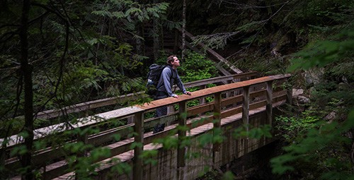 Trekking is the preferred word used to describe multi-day hiking in the mountainous regions of India, Pakistan, Nepal, North America, South America, Iran and in the highlands of East Africa. Hiking a long-distance trail from end-to-end is also referred to as trekking and as thru-hiking in some places. In North America, multi-day hikes, usually with camping, are referred to as backpacking. Another famous early exponent of walking for pleasure, was the English poet William Wordsworth. In 1790 he embarked on an extended tour of France, Switzerland, and Germany, a journey subsequently recorded in his long autobiographical poem The Prelude .His famous poem Tintern Abbey was inspired by a visit to the Wye Valley made during a walking tour of Wales in 1798 with his sister Dorothy Wordsworth.