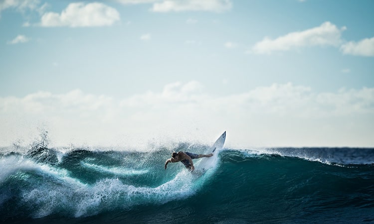 Surfing is a surface water sport in which the wave rider, referred to as a surfer, rides on the forward or deep face of a moving wave, which is usually carrying the surfer towards the shore. Waves suitable for surfing are primarily found in the ocean, but can also be found in lakes or in rivers in the form of a standing wave or tidal bore. However, surfers can also utilize artificial waves such as those from boat wakes and the waves created in artificial wave pools.